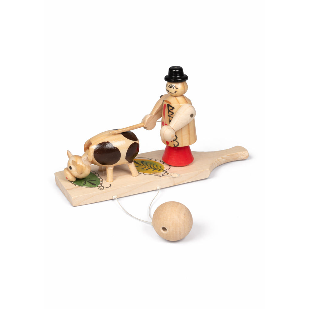 Jucarie din lemn cu fermier si vaca